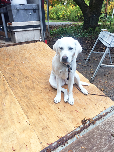 Amazing Grace (Mazie)- Snack Manager. She was born in Melrose Minnesota. She comes from a family of 9 siblings. She brings intelligence, a sassy attitude, and is not afraid to speak her mind. Her job duties include taste testing crew snacks, customer service and job site crumb clean-up. Her hobbies include stick procurement, ball chasing and Applewood Headquarters security.